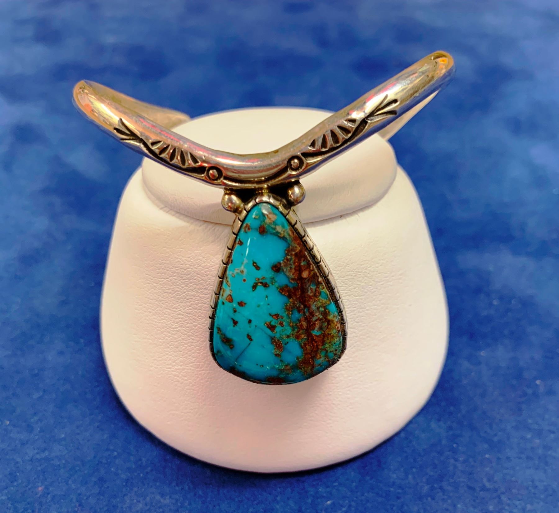 Turquoise in sterling silver bracelet, marked FG