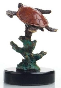 Turtle Bronze Sculpture - 4.5"H 3.5"W 3.5 "D - Great Attention To Detail - Beautiful Finish - Lost Wax Cast