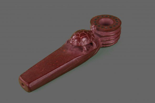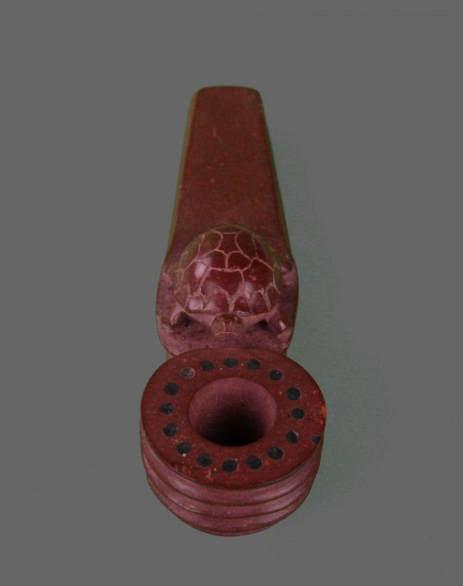 Turtle Catlinite Stone Pipe, Native American (Size: See Last Photo for Measurements)