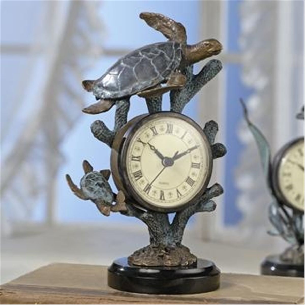 Turtle Clock - 8.5"H 6"W 4.5"D - Brass