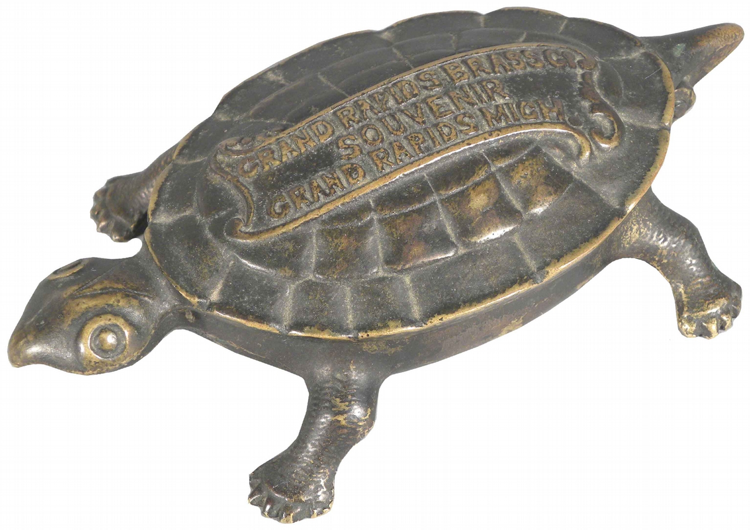 Turtle Match Holder. Souvenir Grand Rapids Brass Co. Mfgs Refrigerator & Furniture Hdw. Excellent condition. 5 inches long.