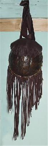 These turtle shell bags are made from snapping turtle shell and deer hide or cowhide. Hand sewn. Has flap over the top and long adjustable shoulder strap.