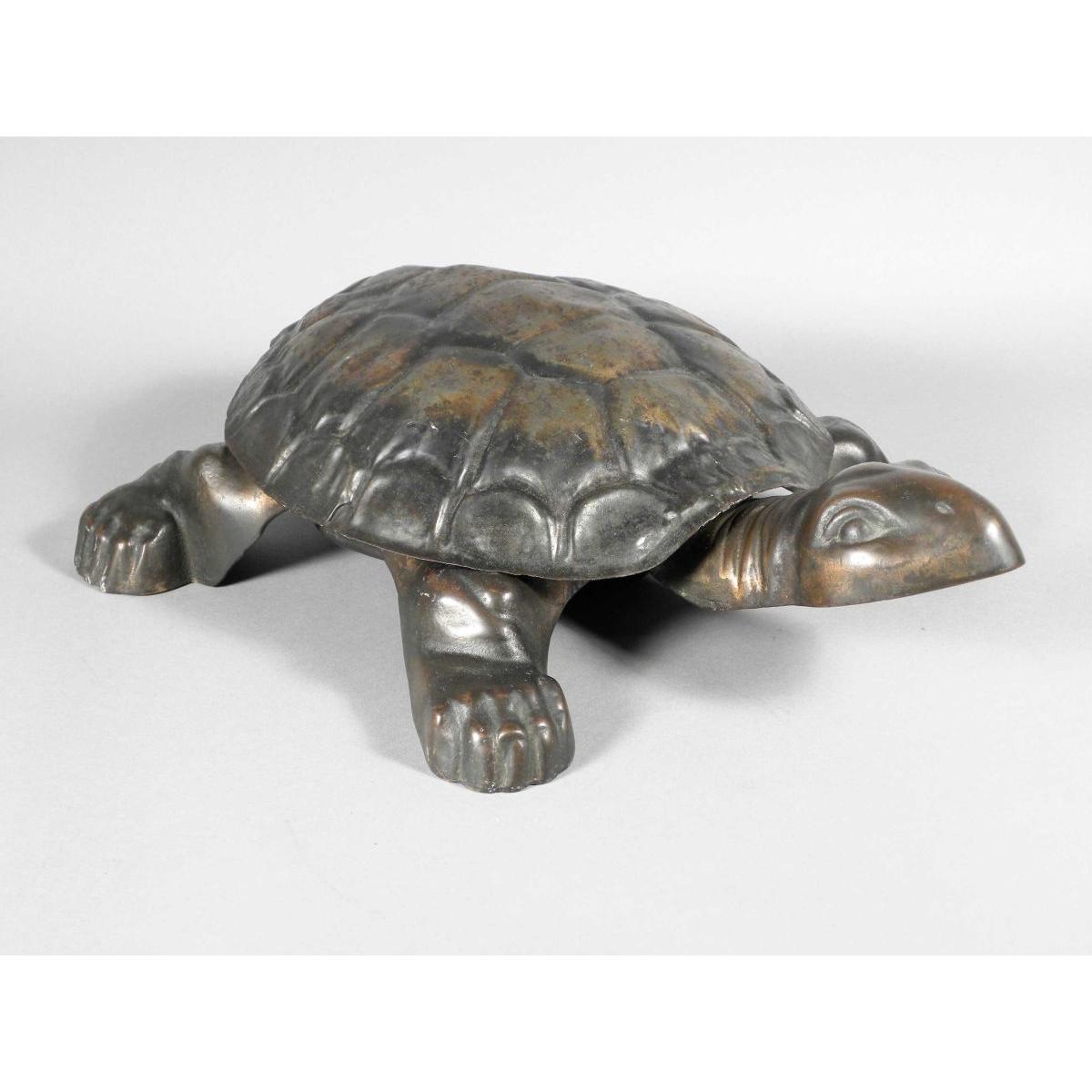 Turtle Spittoon, copper flashed cast iron and tin. Lid embossed, Golden Novelty Co., Ca. 1880. Original insert, very good condition. 13 1/2 X 3 1/4 X 11 inches.