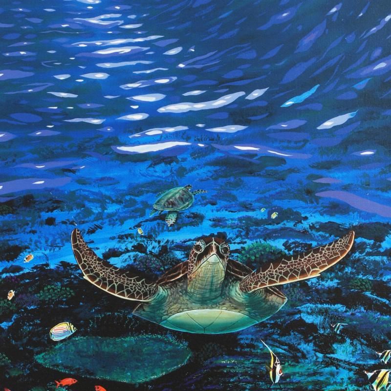 Wyland's true love for nature is so clearly conveyed in each of his brilliantly detailed works. "Turtle Time" is a limited edition giclee on canvas, numbered and hand signed by Wyland! Includes Certificate of Authenticity! Measures approx. 18" x 30" (image).