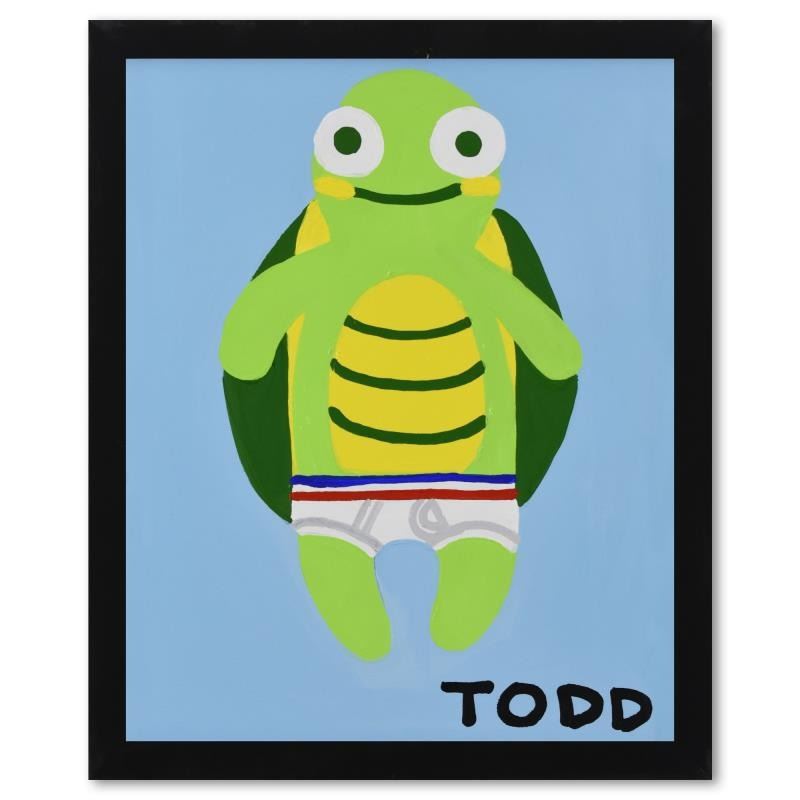 "Turtle" is an original acrylic painting on canvas, hand signed by Todd Goldman. This piece comes framed. Includes Letter of Authenticity. Measures approx. 18" x 22" (frame), 15.5" x 19.5" (image). There is minor wear on the frame but this piece is overal