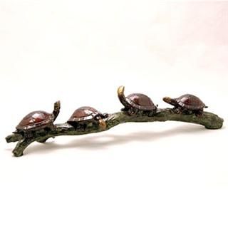 Turtles On Branch Bronze Sculpture - 4h 17w 3.5d - Color Patina