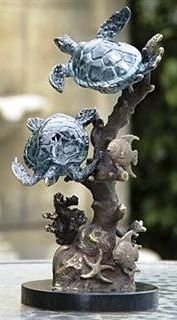 Turtles With Sealife Bronze Sculpture - 12"H 6.5"W 5.5 "D - Great Attention To Detail - Beautiful Finish - Lost Wax Cast