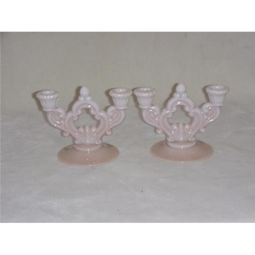 Cambridge Glass Co.. Pair Crown Tuscan 2 light candle holder. 6" tall. X 7 3/4" spread.