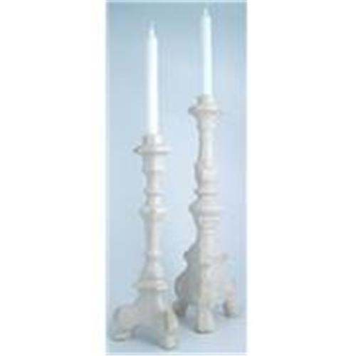 These beautiful hand made Tuscan candlesticks are alabaster in color with the glossy finish rubbed away to expose the raw clay under. Traditional old-world Tuscan design, with triple sculpted feet, looks great in any interior. Two measuring 14.75" tall are available for $195.00 each. Two measuring 18.5" are available for $225 each. Please send e-mail to specify size. Certificate of authenticity included.