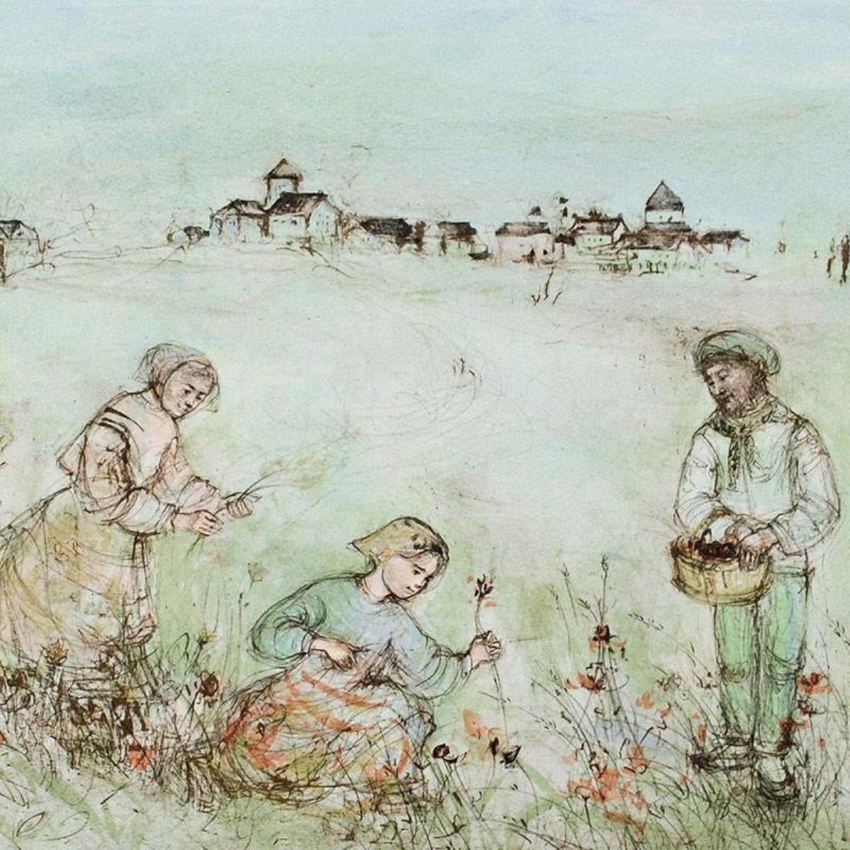 "Tuscan Fields" Limited Edition Lithograph by Edna Hibel, Numbered and Hand Sign