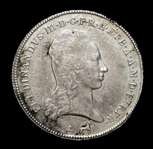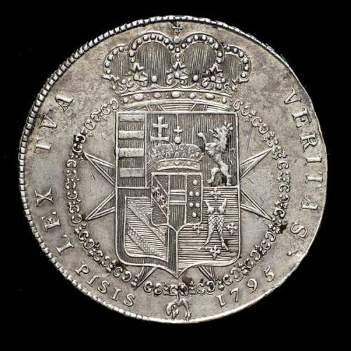 Granducato di Toscana - Ferdinando III di Lorena (1790-1821) - Francescone 1795 - Zecca: Firenze - Diritto: effigie del Granduca a destra - Rovescio: stemma coronato sovrapposto alla croce di Santo Stefano e circondato dal Collare del Toson d'Oro - Non comune - Porosità del tondello - Da esaminare