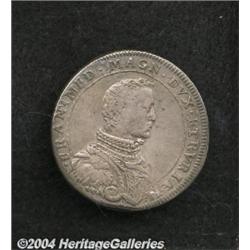 <B>Tuscany. Francesco I 1 Piastre 1584,</B></I> Bust right/St. John standing, Dav-8386, VF. <BR><BR><B>Important notice:</B> Heritage usually auctions material at the rate of 200-250 lots per hour. On some occasions eBay Live bid software or the Internet may not be able to keep up with the pace of the auction. We recommend placing a realistic absentee bid now as insurance to avoid disappointment. Occasionally the auctioneer may eliminate or reject an eBay Live bid, and the auctioneer may also reopen a lot after the close of the eBay live bidding (usually because we missed an audience bid), and may reject your bid even if it shows you as the winning bidder. By bidding via eBay Live, you agree that Heritage may award the lot to another bidder at its sole discretion under the circumstances described above or any other reasonable circumstances. Since eBay bids are not shown to us until we open the lot on the floor, we treat those bids just like floor bids. In most cases the floor responds before the eBay bid is presented to us, due to Internet lag time, so for consistency we have made it a policy that floor bids are always considered first over tie eBay live bids. Also please note that all Heritage lots purchased through eBay Live carry a 20% Buyer's Premium. Please make sure you read the Terms and Conditions before you bid.