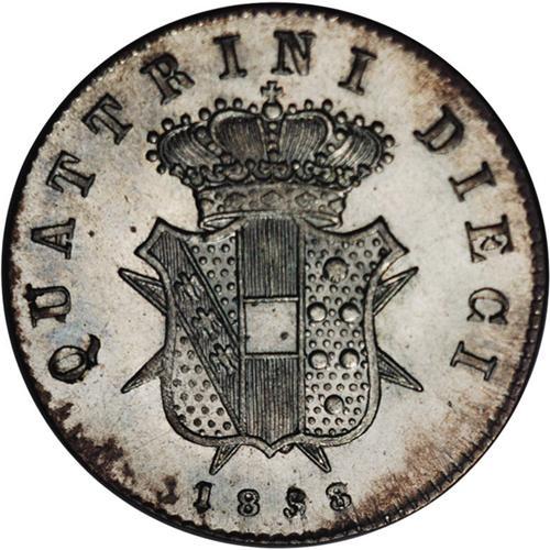 <B>Tuscany. Leopold II 10 Quattrini 1858, </B></I>KM-C67, choice brilliant UNC, sharply struck and very appealing.<BR><I>From the Blue Ridge Collection</B></I><BR><BR><b>Shipping:</b> Coin/Currency (<a target="_blank" href="http://www.heritageauctions.com/common/shipping.php">view shipping information</a>)