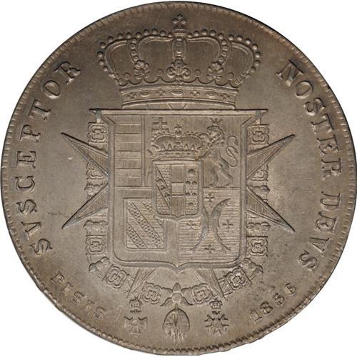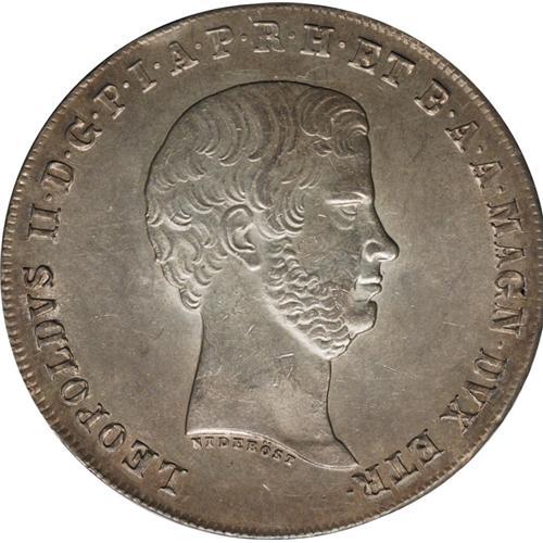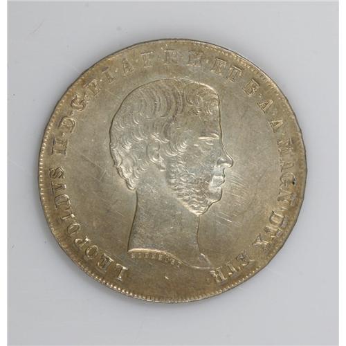 <B>Tuscany. Leopold II 4 Fiorini 1856, </B></I>KM-C75b, choice UNC, fully lustrous with light golden toning. The obverse displays a few small contact marks, but this is a very attractive coin nevertheless.<BR><I>From the Blue Ridge Collection</B></I><BR><BR><b>Shipping:</b> Coin/Currency (<a target="_blank" href="http://www.heritageauctions.com/common/shipping.php">view shipping information</a>)