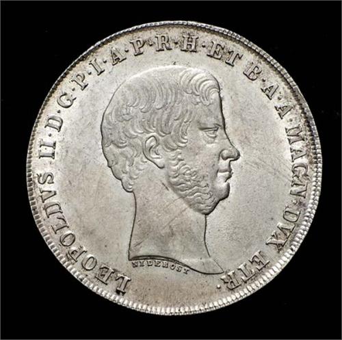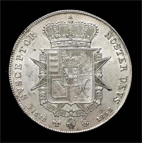 Granducato di Toscana - Leopoldo II (1824-1859) - Francescone 1858 Zecca: Firenze - Diritto: effigie adulta del Granduca a destra - Rovescio: stemma coronato sovrapposto alla Croce di Santo Stefanno e circondato dal Collare del Toson d'Oro - Di ottima qualità