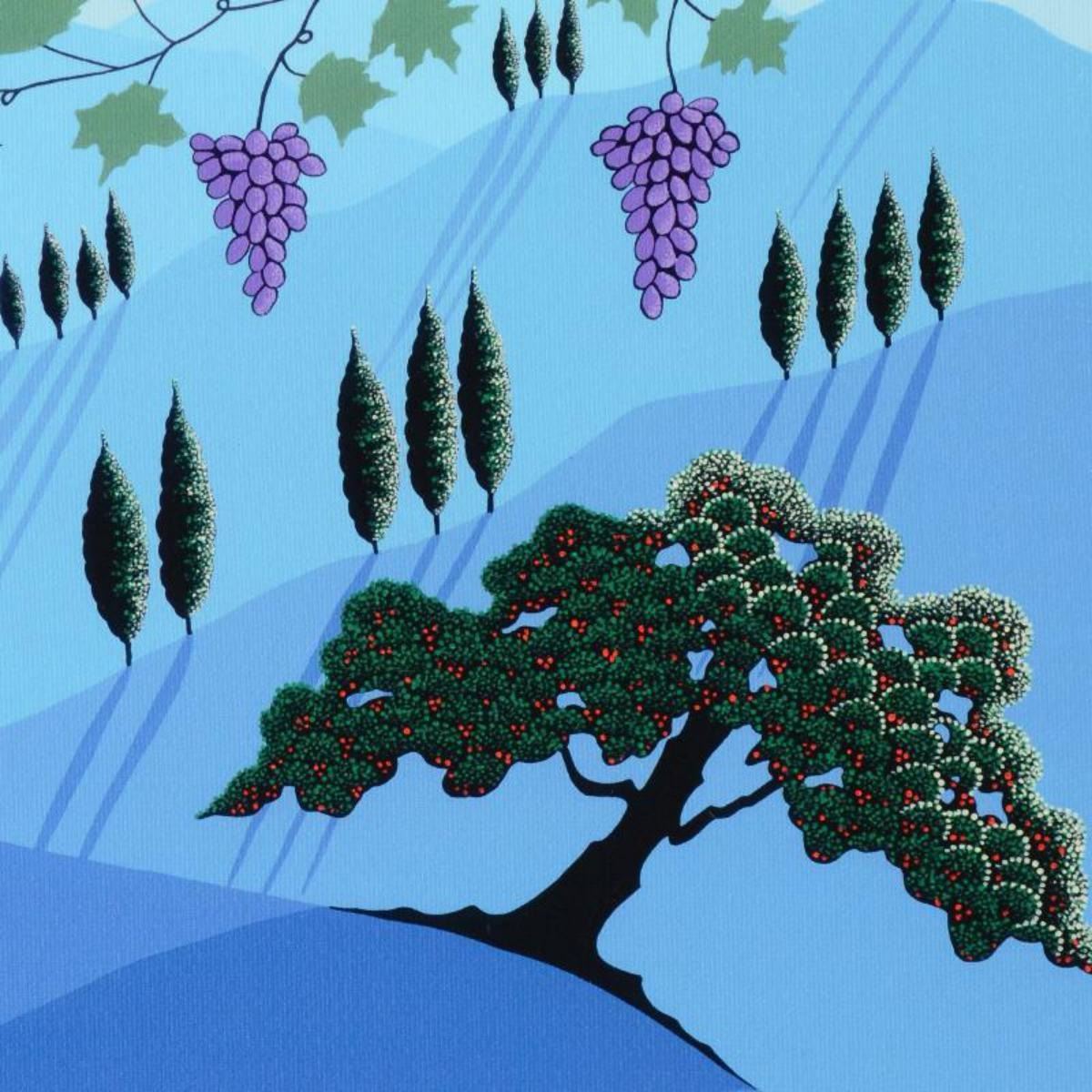 Larissa Holt, a student of distinguished artist Eyvind Earle(1916-2000), uses bold colors and breathtaking scenery to create images of Nature in her own unique style. "Tuscany" is a limited edition giclee on stretched canvas by Holt, numbered and bearing Holt's authorized signature. This piece comes gallery wrapped. Includes Certificate of Authenticity! Measures approx. 10" x 12.5" x 1.5" (image). Reference #: 237427.