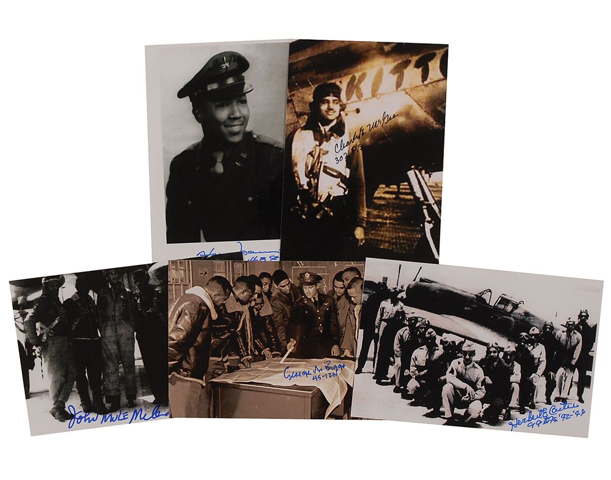 Five photos of various finishes, 4 x 6 and 6 x 4, each signed in felt tip by a Tuskegee Airman. Signers are: Charles McGee, John ‘Mule’ Miles, Herbert Carter, Noel Harris, and George Biggs. In overall fine condition.