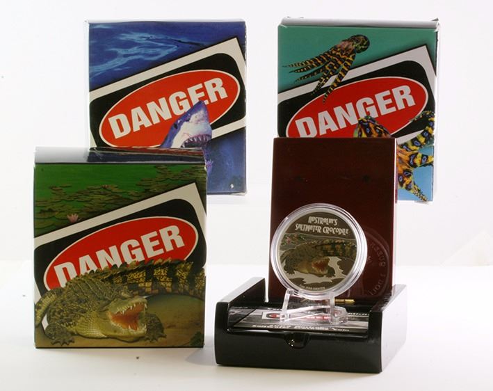 2007 Great White Shark, 2008 Blue Ringed Octopus, 2009 Saltwater Crocodile (3 coins)