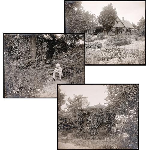 <Our item number 139076><B>[Twain, Mark/Samuel Clemens] Original Photographs.</B> Three original photographs taken at Quarry Farm in Elmira, New York where Twain and his family summered in the 1870s and 80s and where he wrote many of his most famous works. Each photo is 7¾ x 9½ inches, with the publisher's blind stamp, "Copyright 1903 by the Curtis Publishing Company"; the name "T.E. Morr." is engraved in each plate at lower right, and the photos are numbered in the plate at lower left. One photo shows Twain looking out the window of the study built for him in 1874 by his sister-in-law Susan Crane and her husband Theodore. The study was moved to the campus of Elmire College in 1952. A second photo shows Twain sitting in the wooded area surrounding his home. He cogitates, holding a cigar in his right hand and papers in his left. The third is a photo of the home itself. All fine; minor silvering. <BR>Estimated Value $800 - 1,000. <BR><BR>Our item number 139076<BR><IMAGES><P ALIGN="CENTER"><IMG SRC="http://www.goldbergcoins.net/liveauction/49jpegs/139076.jpg"> </P></IMAGES>