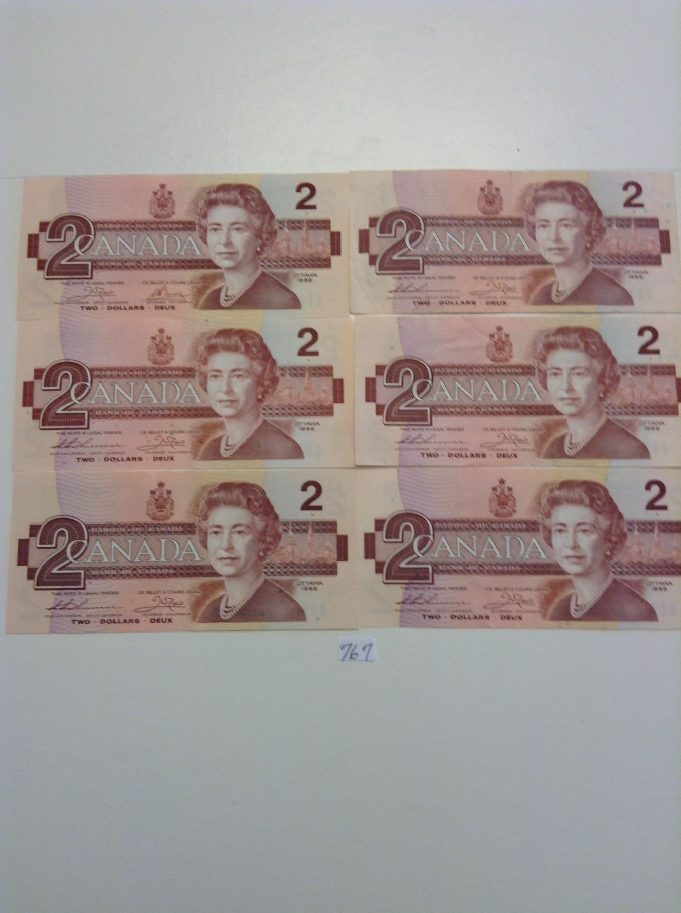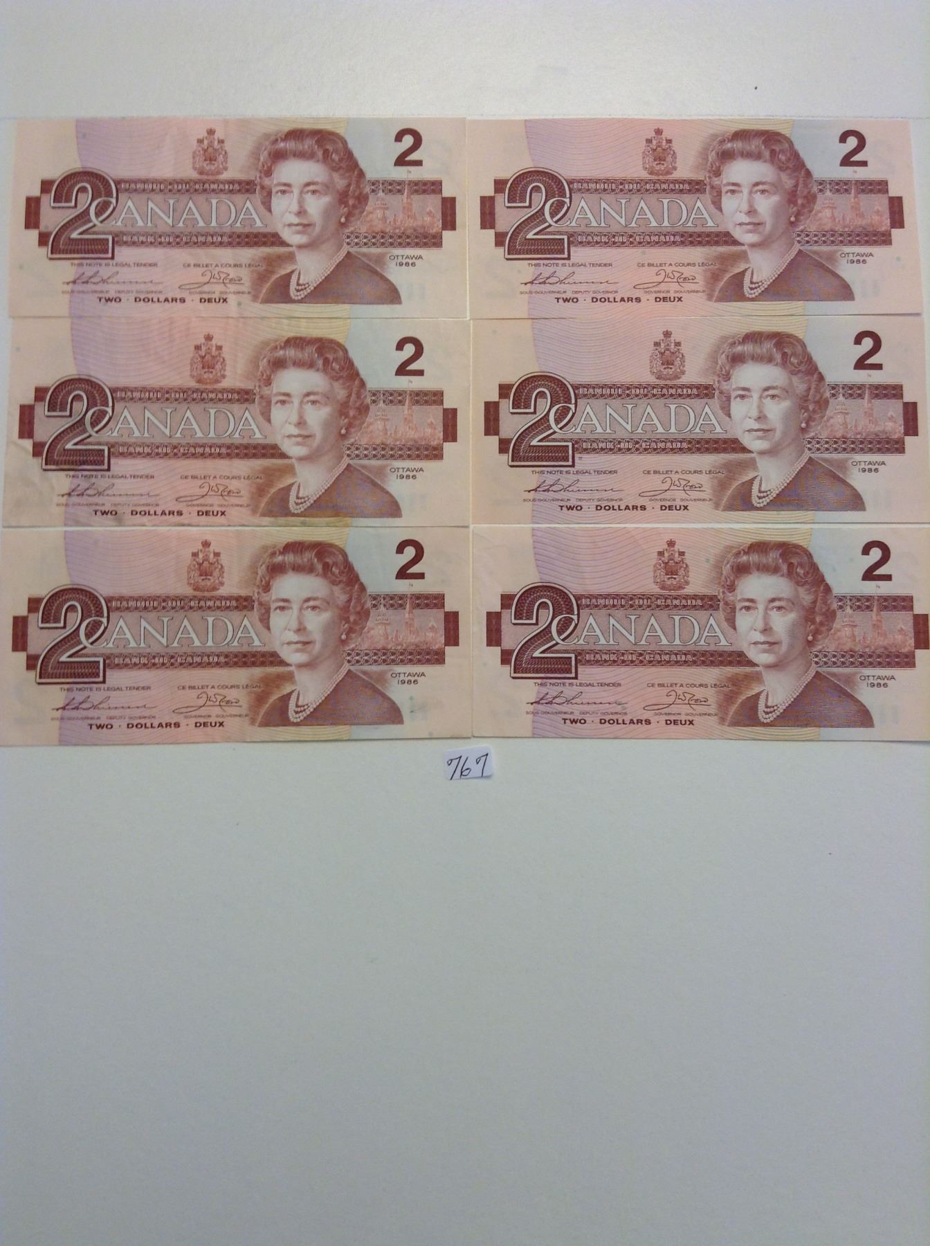 Twelve 1986 Canada $2.00 Dollar Bills - Uncirculated