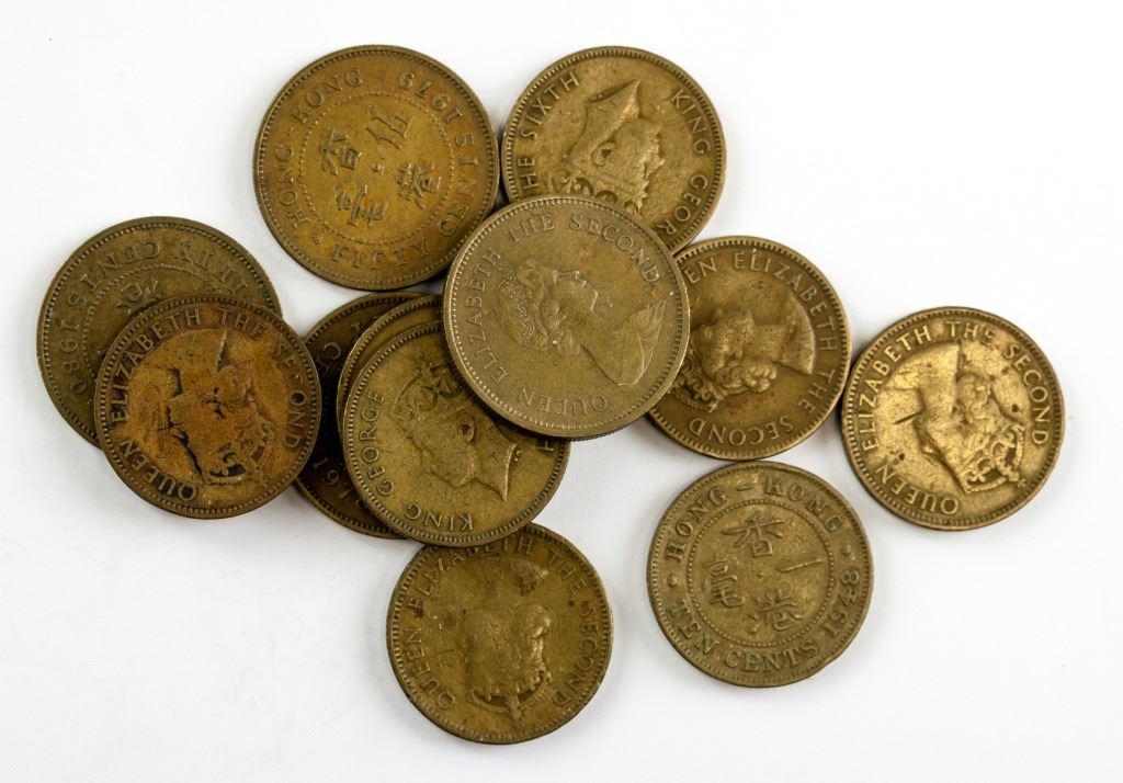 Lot of twelve (12) Hong Kong coins. Of various years and denominations. Diameter: 2.1-2.3 cm, 55 g (total).