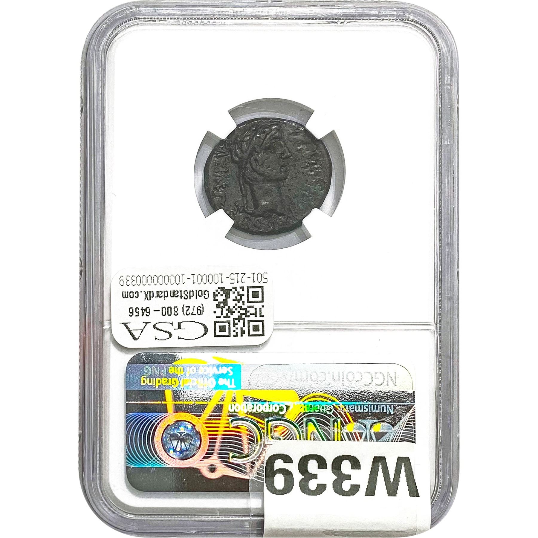 e. Coins sold referencing a third-party grading service are sold “AS IS” without any express or implied warranty, except for a guarantee by GSA that they are genuine. Removal or alteration of the holder, voids all of Bidder’s claims concerning that Product. Certain warranties may be available from the grading services and Bidders are referred to them for further details: Numismatic Guaranty Corporation (NGC), PO Box 4776, Sarasota, FL 34230, www.ngccoin.com/services/writtenguarantee.asp; Professional Coin Grading Services (PCGS), PO Box 9458, Newport Beach, CA 92658, www.pcgs.com/guarantee.html; ANACS, 6555 S. Kenton St., Ste. 303, Englewood, CO 80111; and Independent Coin Grading Co. (ICG), 7901 East Bellview, Ave., Suite 50, Englewood, CO 80111.