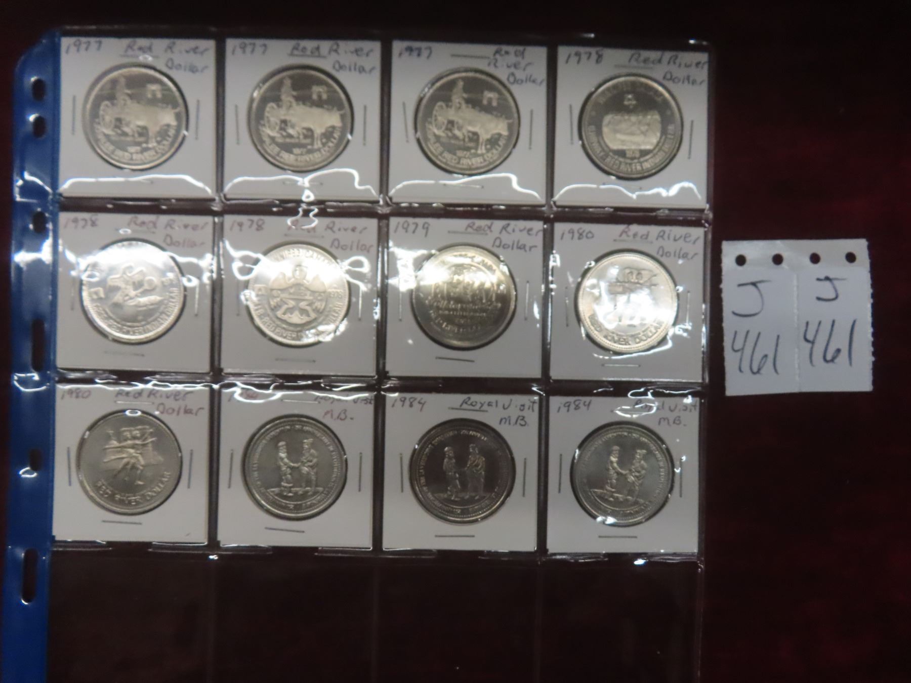 Twelve Canadian Red River Dollars and Royal Visit Medallions