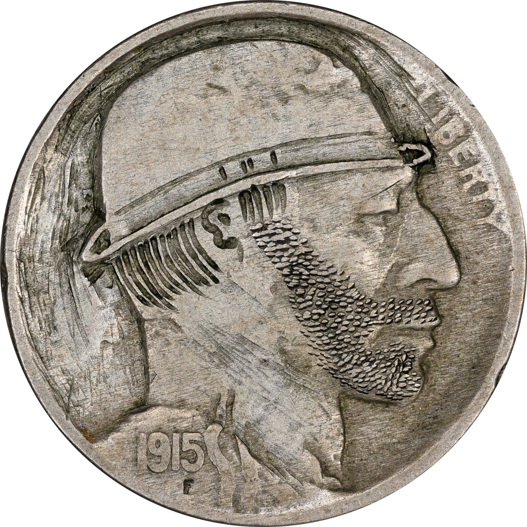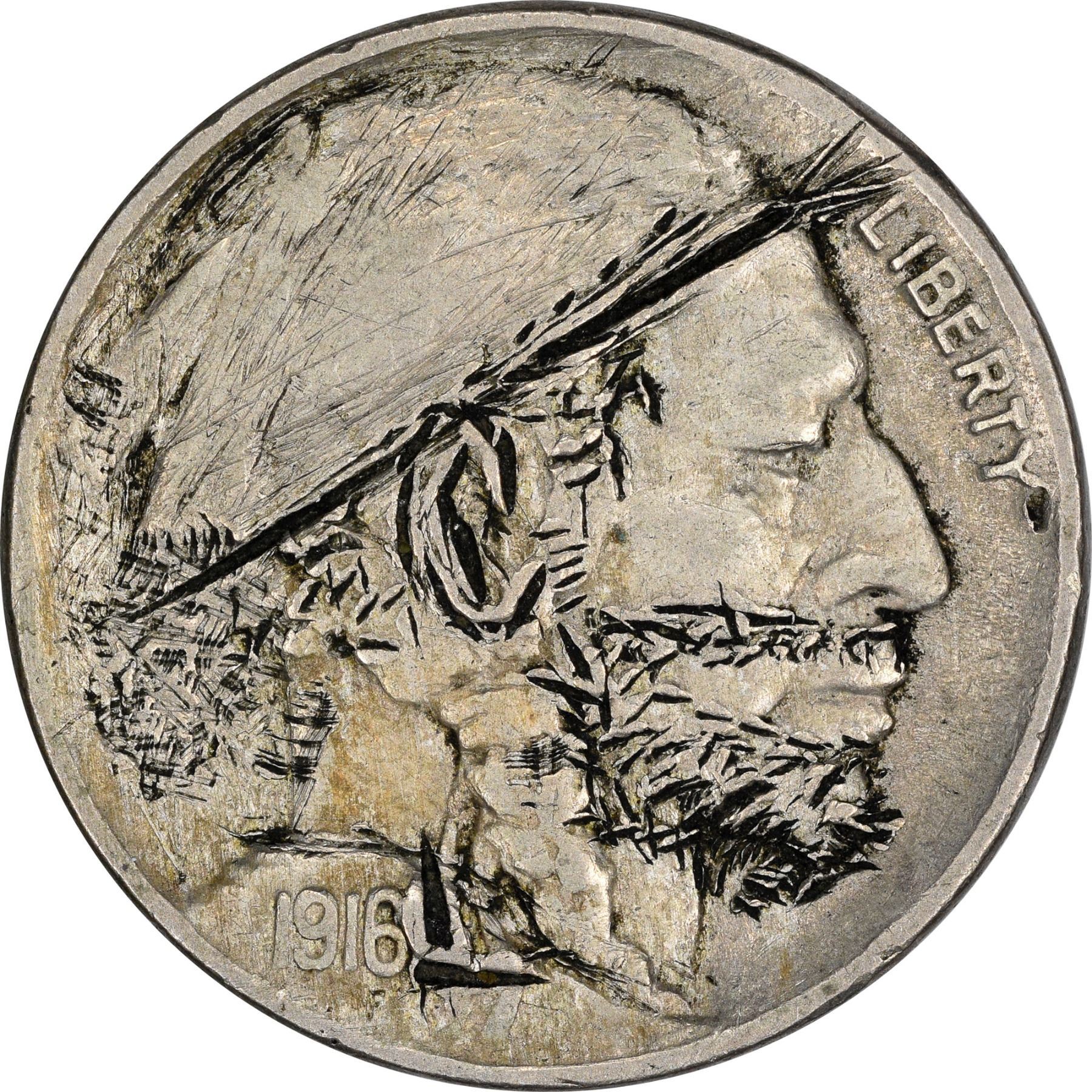 Description: There is a variety of carving styles depicted on these nickels: knife-carved and punched, wriggle cut, and engraved. One piece includes OHNS QD paperwork. This large group may contain matches to some OHNS nicknamed carvers so get out your loupe and have some fun. (Total 12 coins) QD DEF-51