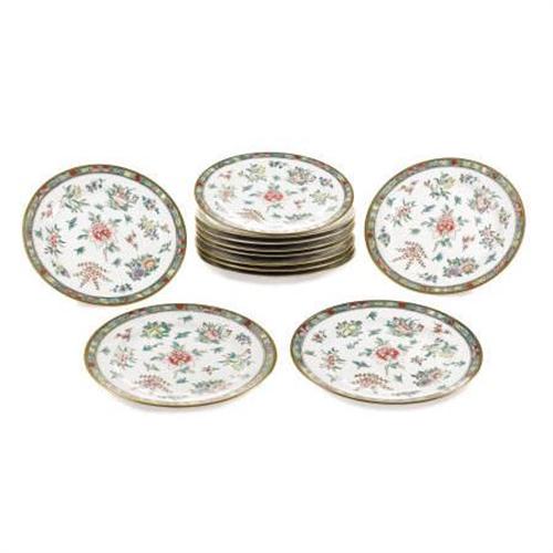 <B>Twelve Chinese Plates<BR></B></I>The twelve Chinese porcelain plates with flower motif throughout with flower and gilt band to perimeter.<BR>10-1/4 inches high (26.0 cm)<BR> <BR><BR><b>Shipping:</b> Requires 3rd Party Shipping (<a target="_blank" href="http://www.heritageauctions.com/common/shipping.php">view shipping information</a>)