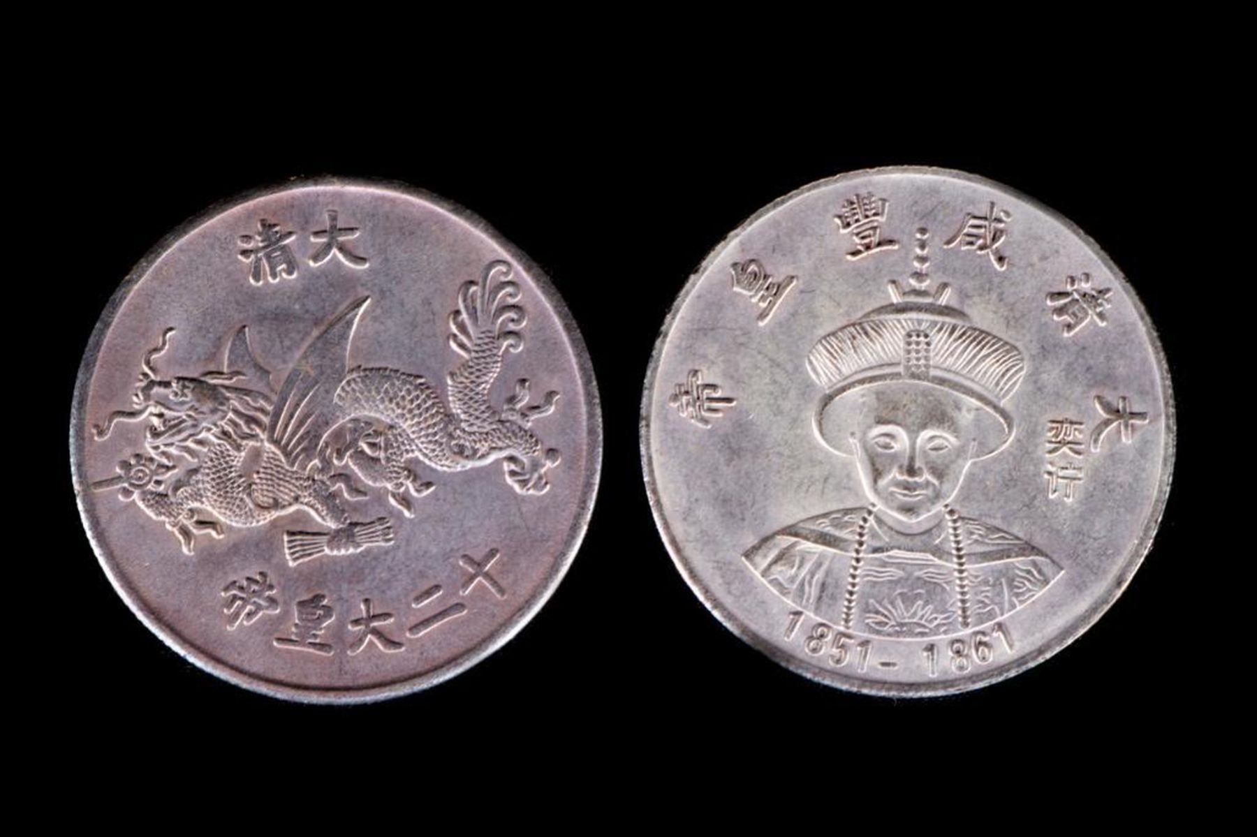 Twelve late 19th/early 20th century Chinese coins depicting various emperors.