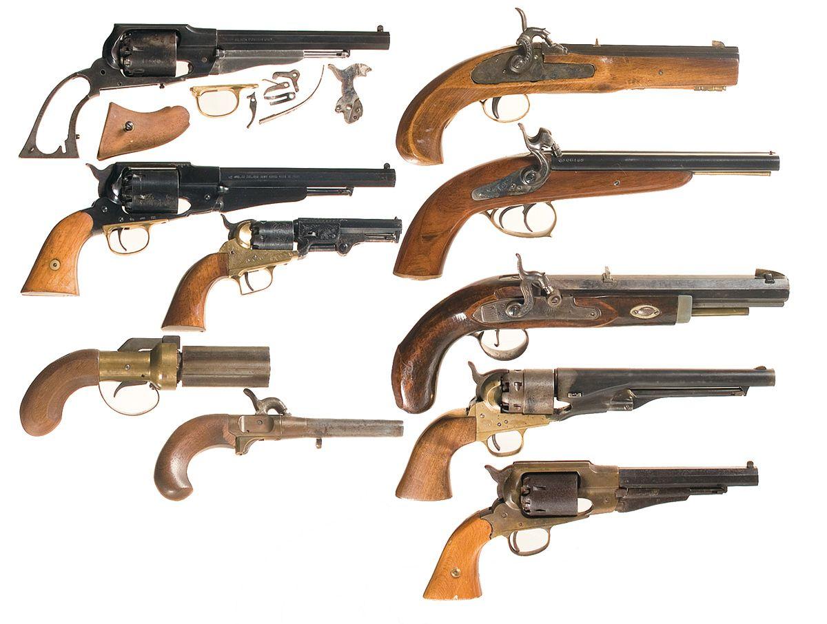 H) Fixed sights, belt hook. Ramrod replaced with barrel weight.