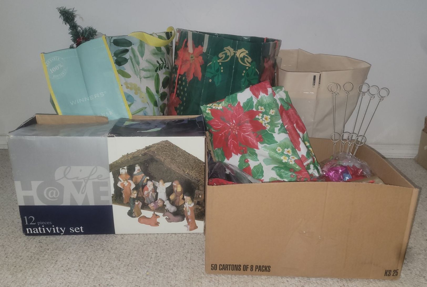 Twelve Piece Nativity Set & Assortment of Christmas Decorations