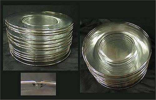Twelve platinum edged salad plates measuring 7 1/2" across. Ground bottoms, one plate is chipped