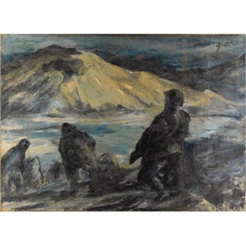 <B>TWENTIETH CENTURY SCHOOL</B></I><BR><I>Battle Scene</B></I><BR>Oil on canvas<BR>29-1/2 x 40 inches (74.9 x 101.6 cm)<BR>Signed upper right<BR> <B>Condition Report:</B> <BR><BR><b>Shipping:</b> Requires 3rd Party Shipping (<a target="_blank" href="http://www.heritageauctions.com/common/shipping.php">view shipping information</a>)