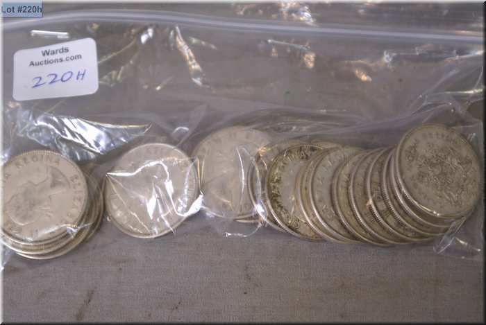 Twenty 1950's thru 1966 Canadian 50 cent coins