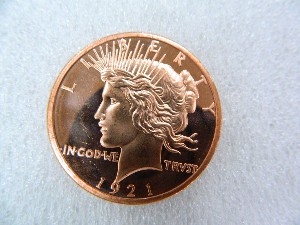 Twenty (20) One Ounce .999 Fine Copper Bullion Rounds, All One Money. Peace Dollar Design