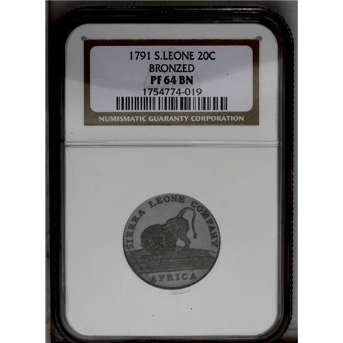 Twenty Cents bronzed Proof 1791, KM4a, PF64 NGC. Long d Twenty Cents bronzed Proof 1791,