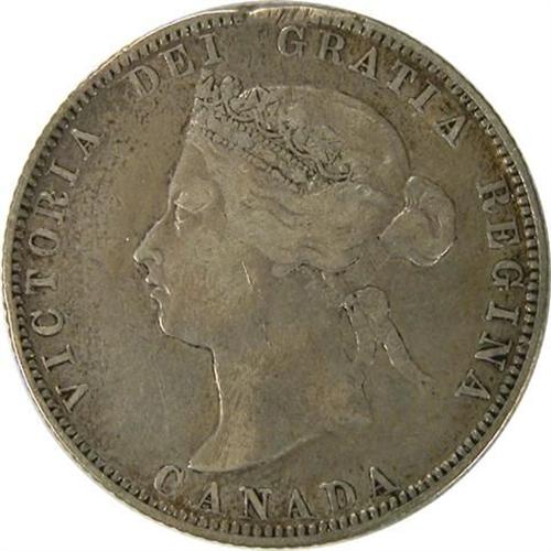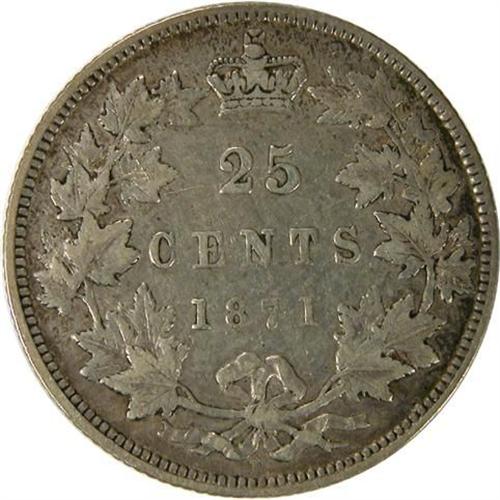 Canada Twenty-Five Cents 1871H Obverse 2, VF, Rim Damage. Light golden toning