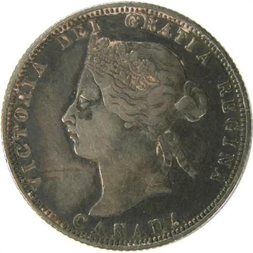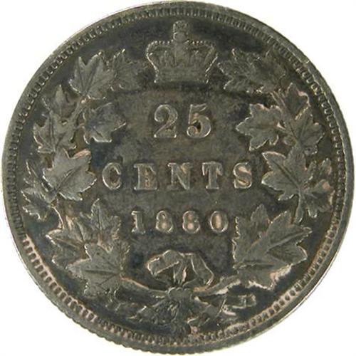 Canada Twenty-Five Cents 1880H Narrow 0, VF Scratched. Light to medium golden gray and blue toning