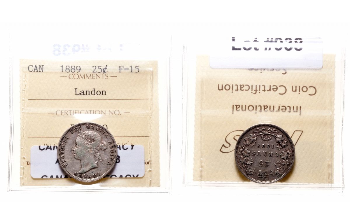 Twenty-Five Cents. 1889. ICCS Fine-15. Medium heavy toning.
