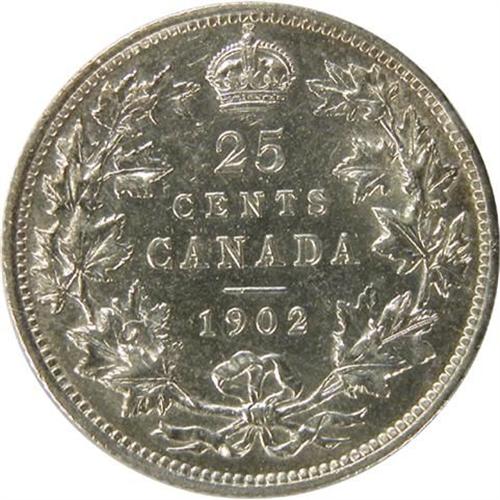 Canada Twenty-Five Cents 1902 ICCS EF-45. A sharp example with considerable remaining lustre and a pale toning
