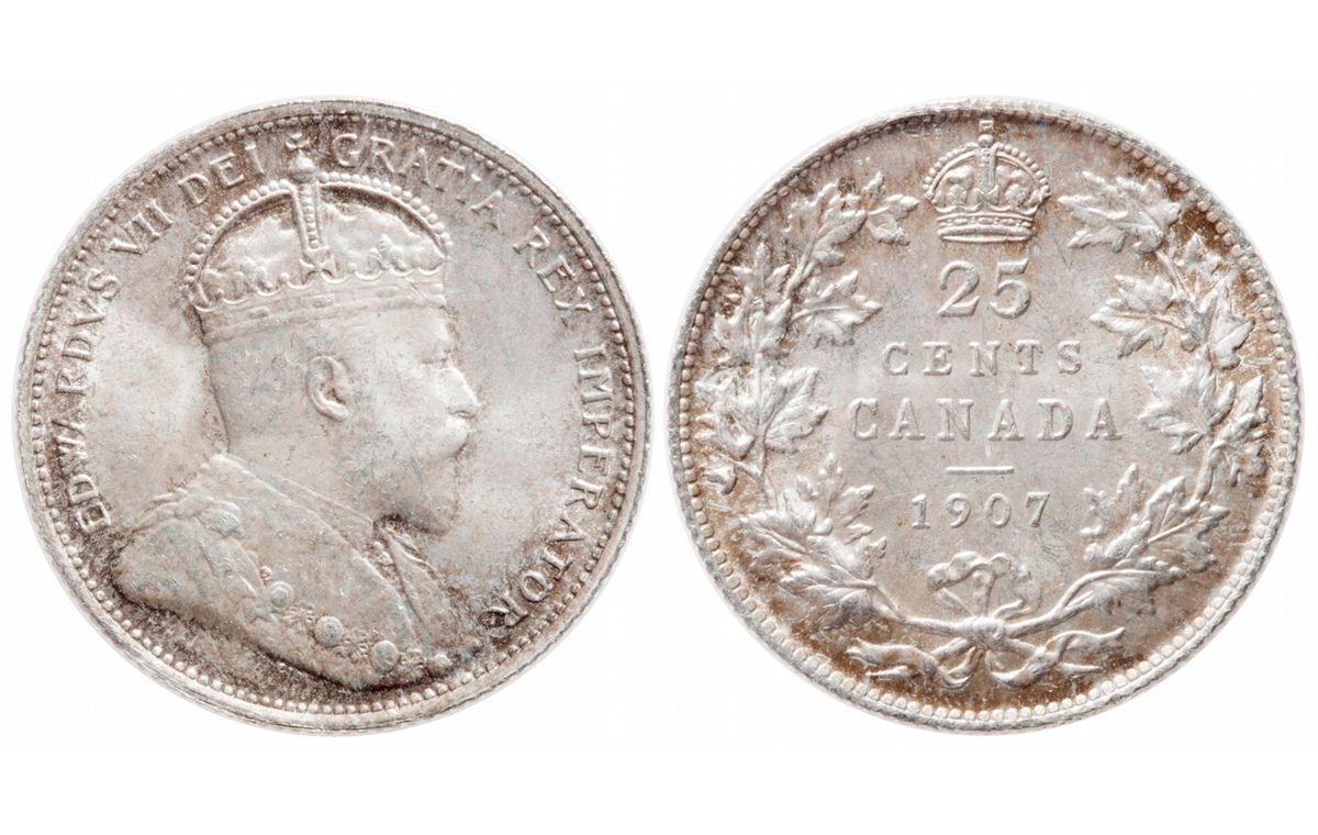 Twenty-Five Cents. 1907. ICCS Mint State-65. Lightly and beautifully toned in multi-hued shades over satiny fields. A Gem. Tied for the 'Finest' graded by ICCS.