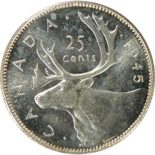 Canada Twenty-Five Cents 1945 ICCS MS-64. Near untoned