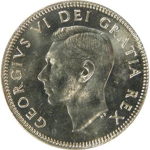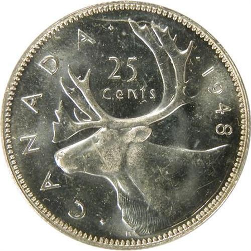 Canada Twenty-Five Cents 1948 ICCS MS-63. Pale golden toning