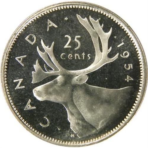 Canada Twenty-Five Cents 1954 ICCS PL-65 Cameo. Near untoned