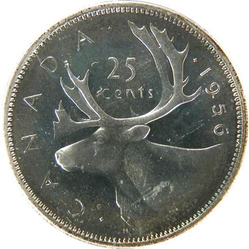 Canada Twenty-Five Cents 1956 PCGS PL-68. Superbly lustrous with heavy cameos and light rim toning. Tied with two others as the highest graded by PCGS