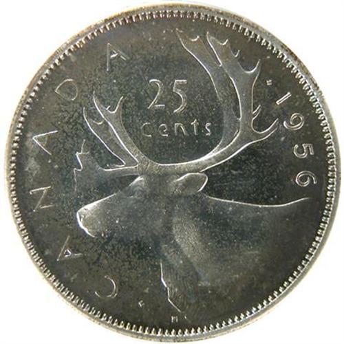 Canada Twenty-Five Cents 1956 PCGS PL-68. Superbly lustrous with heavy cameos and light rim toning. Tied with two others as the highest graded by PCGS
