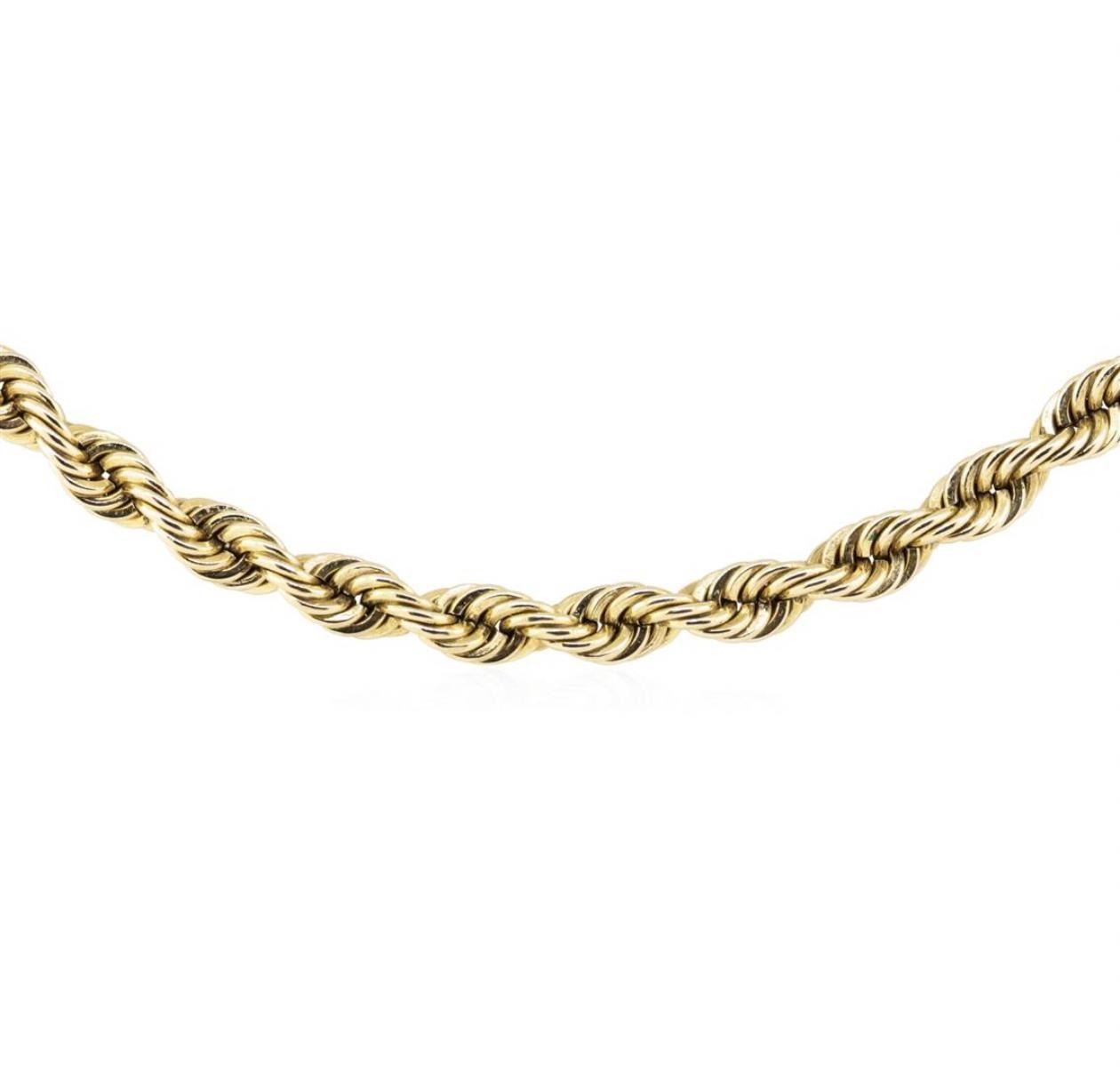 One rope chain measuring approximately twenty four inches in length featuring: 14KT yellow gold weighing 47.5 grams.