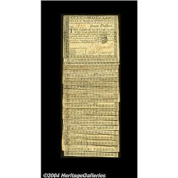 Twenty-Three $7 Massachusetts Guaranteed Notes. Although not physically attached to one another in any way, this is clearly an original group that has been together since the day they were hole cancelled. Most every piece is Extra Fine or better, with only a few grading Very Fine. A lovely and rare original group. 23 notes <BR><BR><B>Important notice:</B> Heritage usually auctions material at the rate of 200-250 lots per hour. On some occasions eBay Live bid software or the Internet may not be able to keep up with the pace of the auction. We recommend placing a realistic absentee bid now as insurance to avoid disappointment. Occasionally the auctioneer may eliminate or reject an eBay Live bid, and the auctioneer may also reopen a lot after the close of the eBay live bidding (usually because we missed an audience bid), and may reject your bid even if it shows you as the winning bidder. By bidding via eBay Live, you agree that Heritage may award the lot to another bidder at its sole discretion under the circumstances described above or any other reasonable circumstances. Since eBay bids are not shown to us until we open the lot on the floor, we treat those bids just like floor bids. In most cases the floor responds before the eBay bid is presented to us, due to Internet lag time, so for consistency we have made it a policy that floor bids are always considered first over tie eBay live bids. Also please note that all Heritage lots purchased through eBay Live carry a 20% Buyer's Premium. Please make sure you read the Terms and Conditions before you bid. <BR><BR><B>IMPORTANT ANNOUNCEMENT ABOUT RESERVES:</B> Heritage now divulges all reserves on its web site 7 days before every auction. If you want to know whether the reserve on this lot has been met, and if not, what the reserve amount is, please visit this lot page on the HeritageCoin.com web site, or email: bid@HeritageGalleries.com