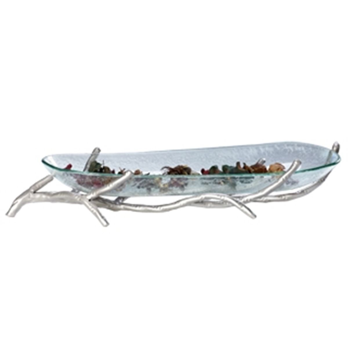 Twig Glass Tray - 3"H 16.5"W 6.5"D - Aluminum & Glass